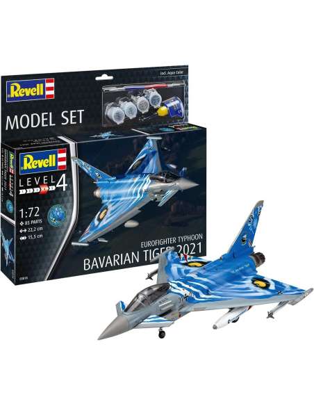Maquetas de Aviones MilitaresMaqueta ModelSet Eurofighter Typhoon Bavarian. Revell. Incluye Pegamento, Pinturas y Pincel.